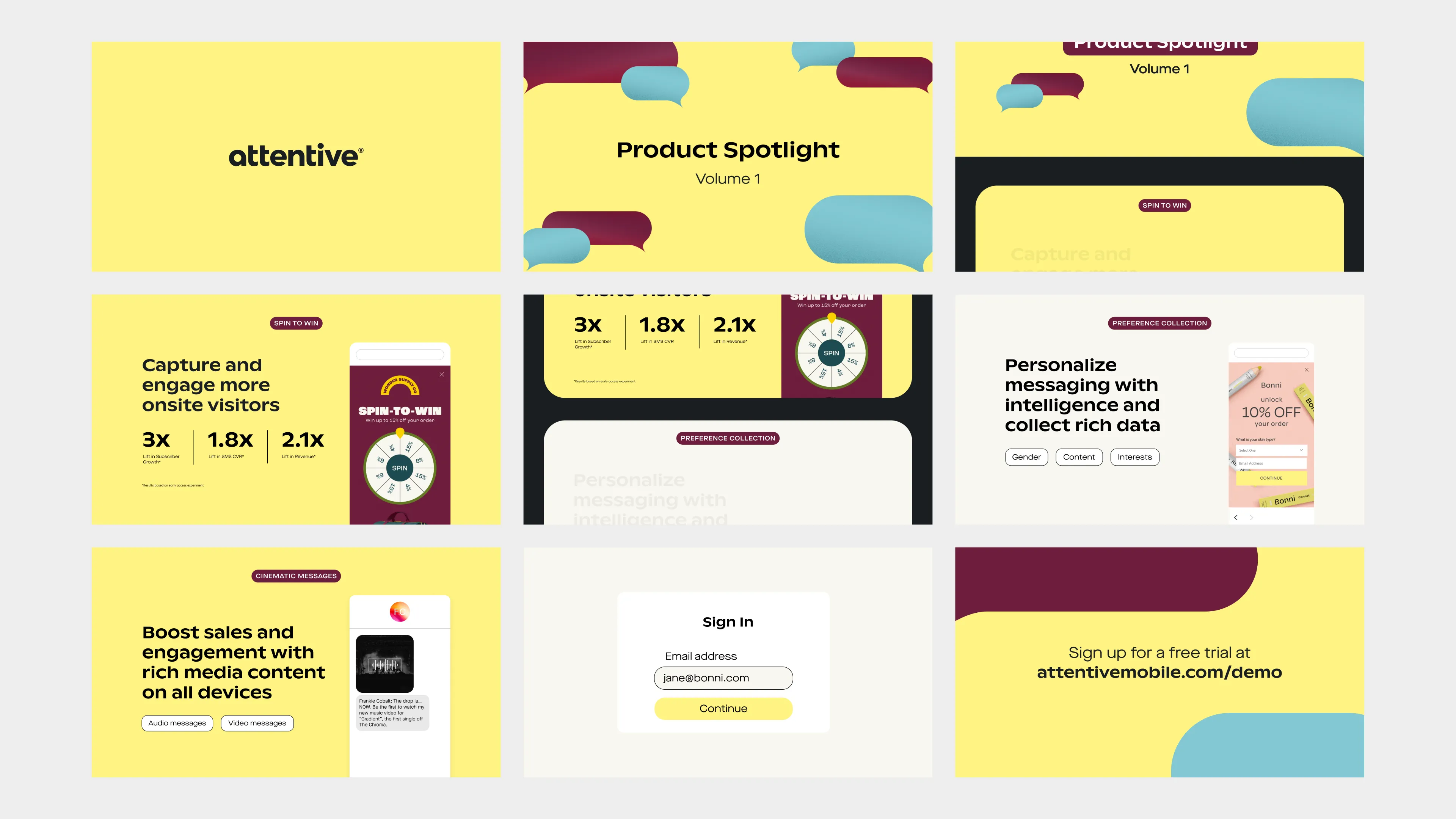 In order to target the sports industry and providing a case study for a influential name brand, we created the brand identity Gridiron Grizzlies. This enables our sales, marketing and product team to pitch the Attentive product to a new line of business.
